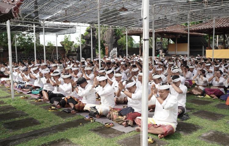 Wakil Bupati Karangasem Pandu Prapanca Lagosa, didampingi Sekretaris Daerah I Ketut Sedana Merta, berbaur dengan para ASN mengikuti jalannya persembahyangan yang diikuti oleh para kepala OPD dan seluruh ASN di lingkungan Pemkab Karangasem.
