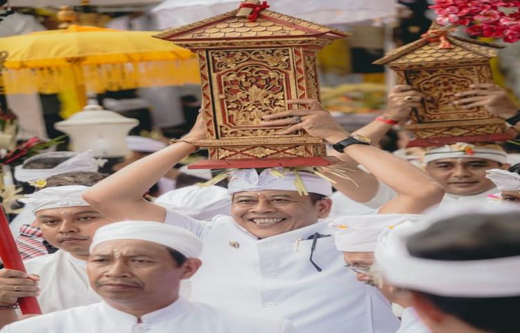 Pada momen sakral tersebut, Bupati Parwata berkesempatan mundut Jempana Ida Bhatara Kiduling Kreteg, Sementara itu, Wabup Pandu mundut Jempana Ida Bhatara Pura Prajapati Hyang Haluh.